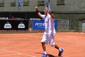 “Eu sabia que seria muito difícil e se o jogo demorasse seria pior pra mim. Entrei muito ansioso, pensando em muita coisa, meu nome sendo divulgado na imprensa, que o cara foi número 1, que o cara não iria cansar. Me perdi no início, mas no segundo set comecei a bater melhor a direita,comecei a agredir ele, fiz 5 a 2 e achei que iria fechar, mas o cara voltou com tudo e começou a agonia. Fechei 6/4. No terceiro estava morto, pernas pesadas, achei que ele iria me matar. Fui quebrar ali no 6 a 5”, disse João que revelou seus pensamentos ao longo da batalha.